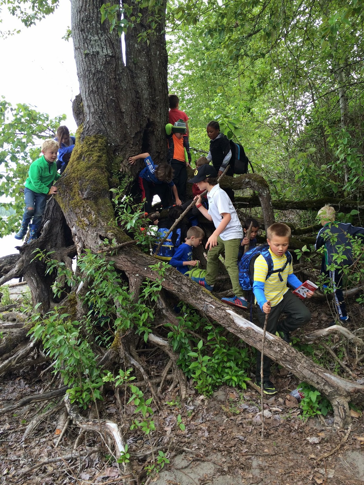 The students in room 13 spent their Earth Day exploring Kelley Point Park and Smith Bybee Wetland! Our morning started off with a nature walk led by our wonderful parent volunteers. Students found a giant tree to climb in and an anchor that was right at the end of the park. We ate our lunches by the edge of the Willamette and Columbia Rivers, up in a meadow. There were plenty of walking sticks to go around and everyone explored the beaches at the park.